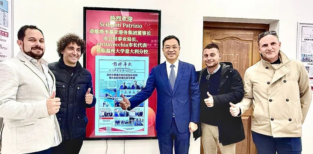 2025年11月18日,意大利Scilipoli Patrizo奇维塔韦基亚港务集团董事长兼市公用事业局长、civitavecchia市长代表携代表团莅临温州大学意大利分校、“一带一路”中国品牌世界行(“一带一路”丝路学院)考察指导,就教育及文化等领域展开深入交流,进一步推动中意友好合作。温州大学意大利分校校长吴敏热情接待,并陪同参观。