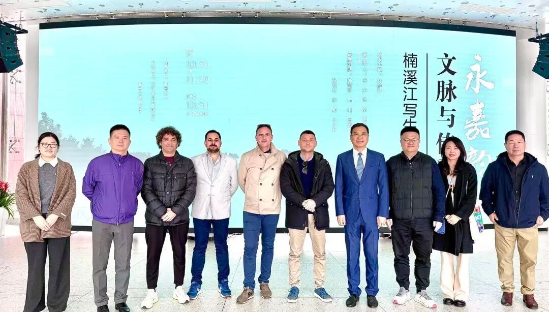 在温州大学美术馆,代表团重点参观了温州大学美术馆永嘉韵·文脉与传承——楠溪江写生作品展。展览中,师生们以多元艺术形式呈现的创作理念与文化表达,得到了Scilipoli Patrizo代表团一行的高度评价。代表团成员指出,此类艺术交流活动为中意文化互鉴提供了鲜活载体,期待未来能推动两国艺术院校在课程共建、作品联展、师生交流等方面开展常态化合作,让中意艺术文化在碰撞中实现共融共生。
