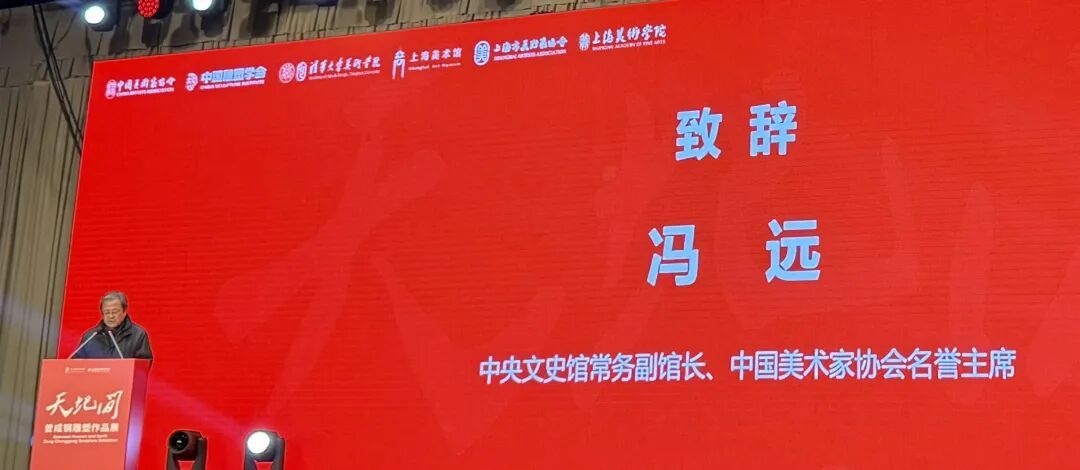中央文史研究馆副馆长、中国美术家协会名誉主席冯远、中国文学艺术界联合会副主席、浙江省文学艺术界联合会主席、中国油画学会主席许江、中央美术学院原院长潘公凯、中国美术家协会分党组书记、驻会副主席屈健、中国美术家协会主席、北京市美术家协会主席 范迪安(视频)、中国文化艺术发展促进会会长杨晓阳、上海文学艺术界联合会党组成员、专职副主席方坤、上海美术馆党委书记、执行馆长王一川、中国雕塑学会秘书长孙振华分别致开幕词。